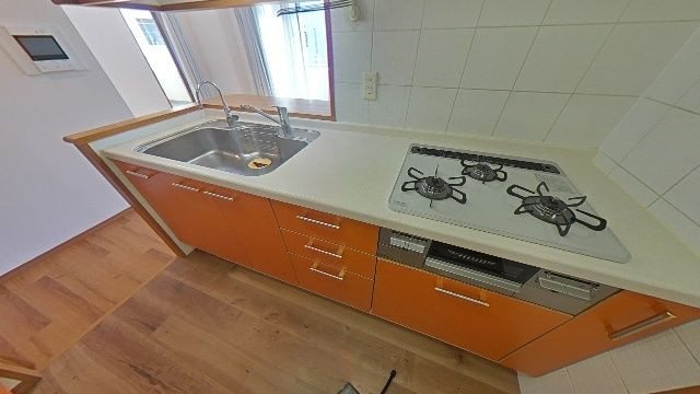 対面システムキッチンで料理も快適。ガスコンロ付きでお料理好きにも嬉しい!